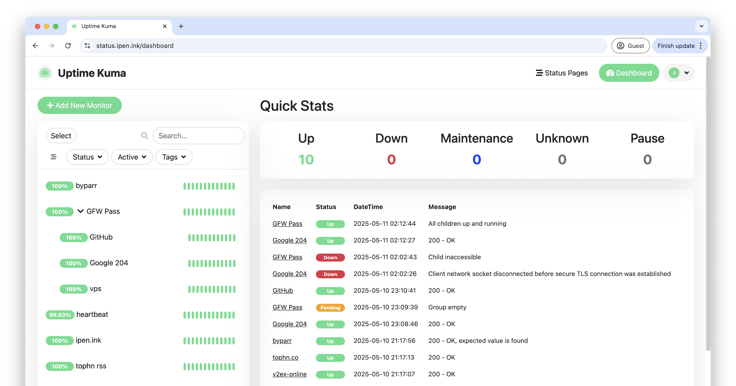 最后放一张我的 uptime-kuma 截图: